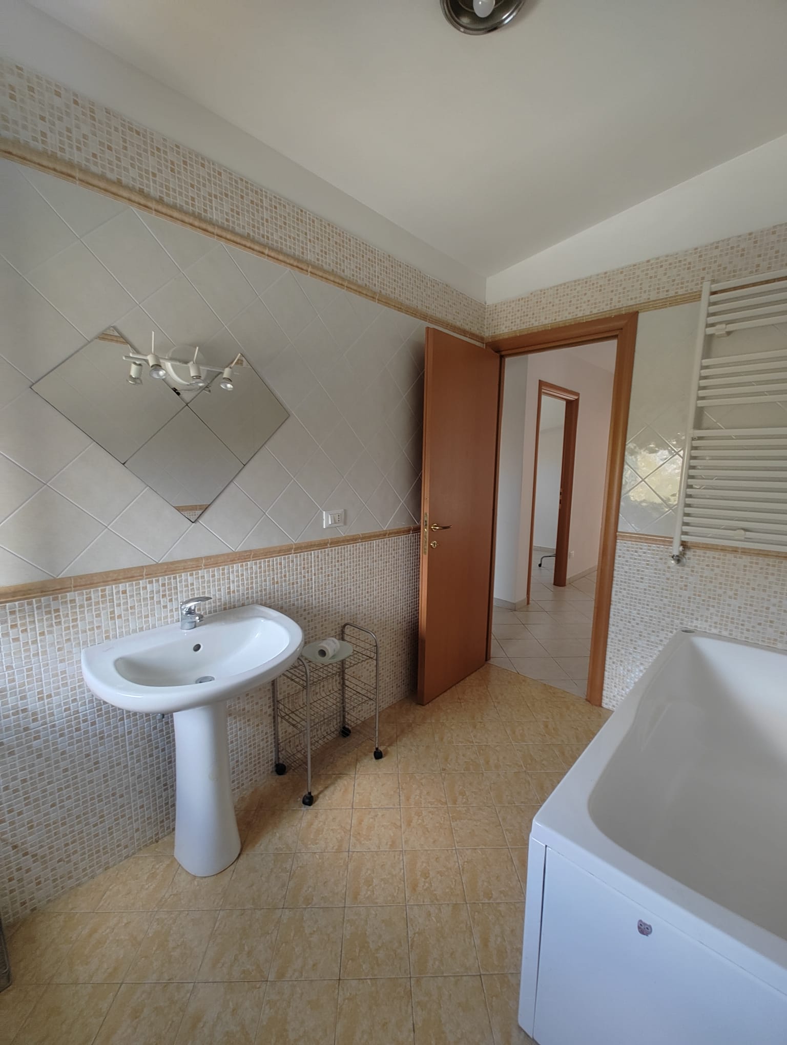 A Vasto, vendesi appartamento di 108 mq catastali posto al 2° piano di una recente costruzione. L’immobile si compone di ingresso sulla zona giorno, in cui una comoda porta scorrevole divide la zona living dalla cucina abitabile, entrambi con l’uscita sul bellissimo terrazzo di circa 20 mq. La zona notte invece prevede 3 camere da letto, 2 bagni, uno con vasca e l’altro con doccia, ed un ulteriore terrazzino coperto. Inclusi nel prezzo sia il posto auto in corte condominiale recintata che il garage di 20 mq al piano interrato. Costruzione del 2005 in ottime condizioni. Zona semi-centrale e tranquilla non distante dai principali servizi. Ottimo usato ad un ottimo prezzo.